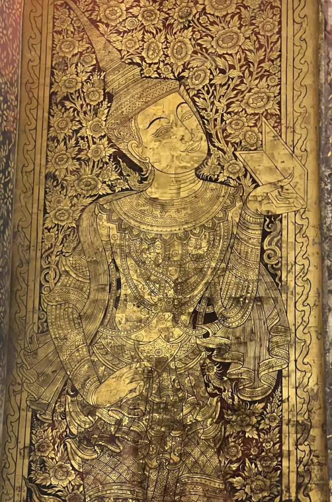Традиционная тайская роспись двери храма с Буддой. Чиангмай, Тайланд.