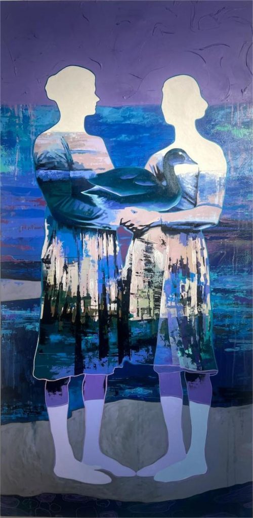 Картина «Гармония» Елизаветы Пугачевой создает ощущение идеализированного мира, где все находится в равновесии. Утка как символ верности, подчеркивает уязвимость и одновременно силу героиням изображения.